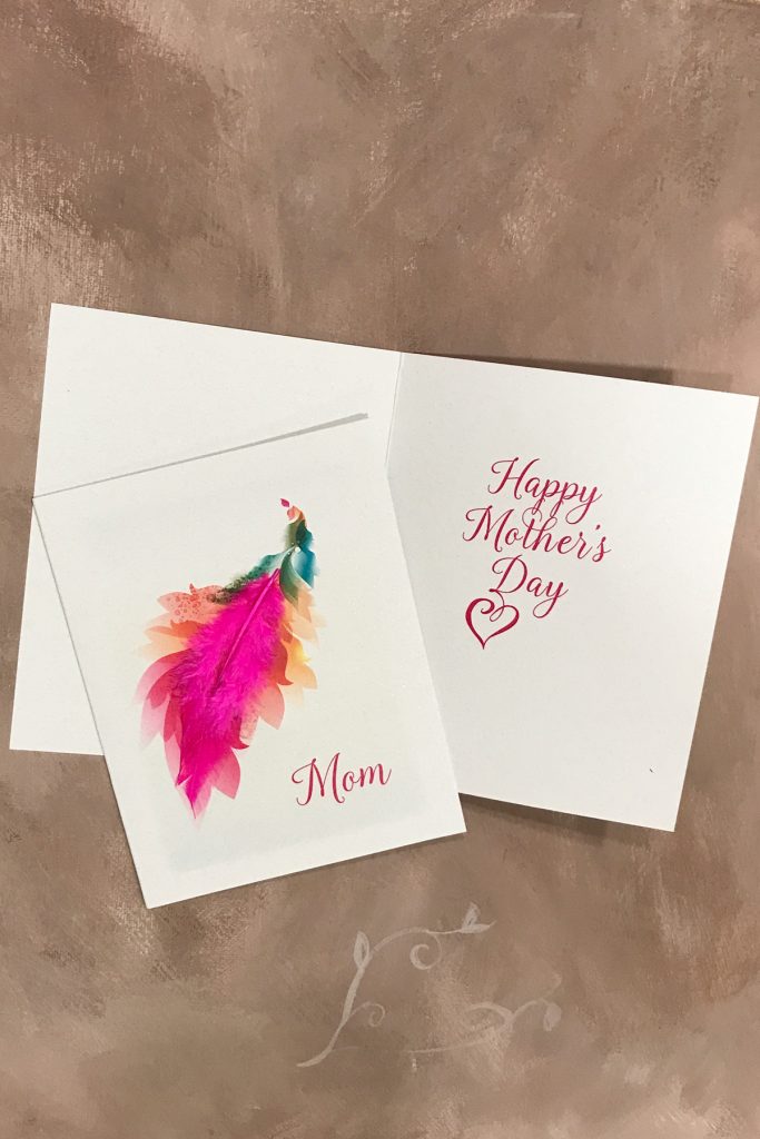 Printed on quality shimmer paper, with feathered texture,  A2 4.25″ x 5.5″, includes white self-adhesive envelope.